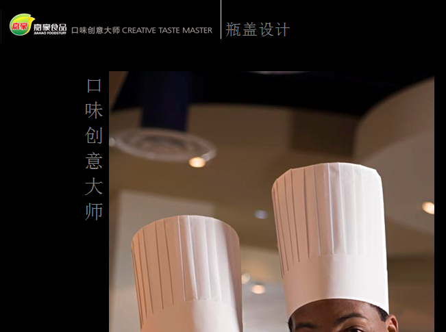 通過(guò)頭腦風(fēng)暴創(chuàng)意,發(fā)現(xiàn)市場(chǎng)上所有調(diào)味品的瓶蓋都是矮矮小小的,能不能把瓶蓋加高?脫穎而出,同時(shí),廚師帽是飲食的聯(lián)想符號(hào)之一,能不能把廚師帽做成瓶蓋,將其打造成為嘉豪食品的超級(jí)符號(hào):